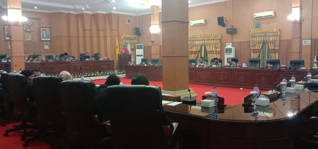 Juru bicara Badan Pembentukan Peraturan Daerah (Bapemperda) Muhammad Ali Hatta, S.Sos, menyampaikan Laporan Bapemperda Terhadap Hasil Pembahasan Rancangan Peraturan Daerah (Ranperda) Tentang Perlindungan Lahan Pertanian Pangan Berkelanjutan.