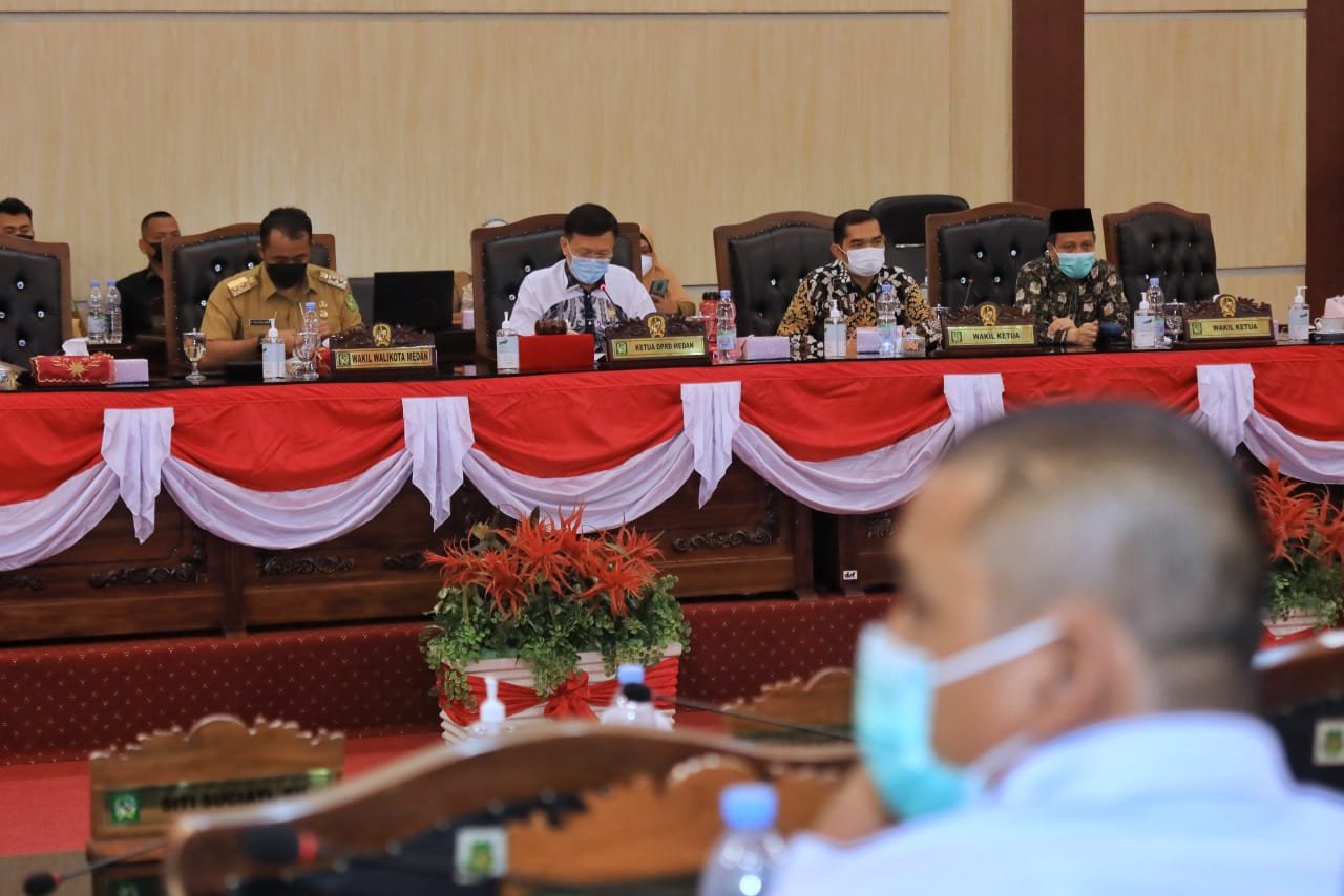 Dalam sidang Paripurna yang dipimpin Ketua DPRD Medan Hasyim SE dan dihadiri Para Wakil Ketua DPRD dan sejumlah Anggota DPRD Medan ini, Wakil Wali Kota Medan juga menyampaikan jawaban atas Pemandangan Umum Fraksi PDI-P terkait dengan Strategi dan langkah yang dilakukan Pemko Medan untuk menjaga Laju Pertumbuhan ekonomi.