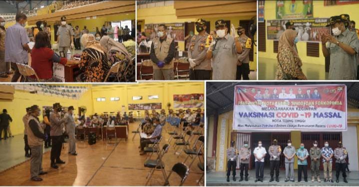 Tebing Tinggi, kedannews.com – Walikota (Walkot) Tebing Tinggi Ir. H. Umar Zunaidi Hasibuan, M.M. bersama Kapolres AKBP. Agus Sugiyarso, S.IK, Kadis Kesehatan dr. Nanang Fitra Aulia, Sp.Pk, Kadis Kominfo Dedi Parulian Siagian, S.STP, M.Si serta Kepala BPBD Wahid Sitorus, meninjau langsung proses suntik vaksinasi massal Covid-19 terhadap masyarakat Kota Tebing Tinggi yang lanjut usia (lansia), bertempat di GOR Asber Nasution, Jl. Gn. Leuser, Kamis (27/05/2021).