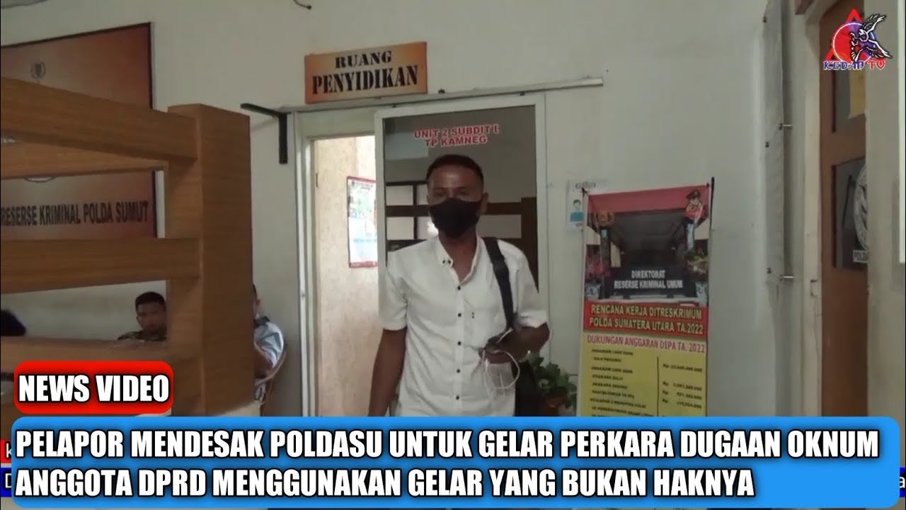 Hal tersebut disampaikan Erwin, warga Deli Serdang dari salah satu anggota LSM telah melaporkan Drs RMN ke Poldasu dengan nomor STTLP/B/369/II/2022/POLDA SUMUT tertanggal 23 Pebruari 2022 terkait penggunaan gelar yang bukan haknya yaitu Doktorandes yang seharusnya S.Pd.