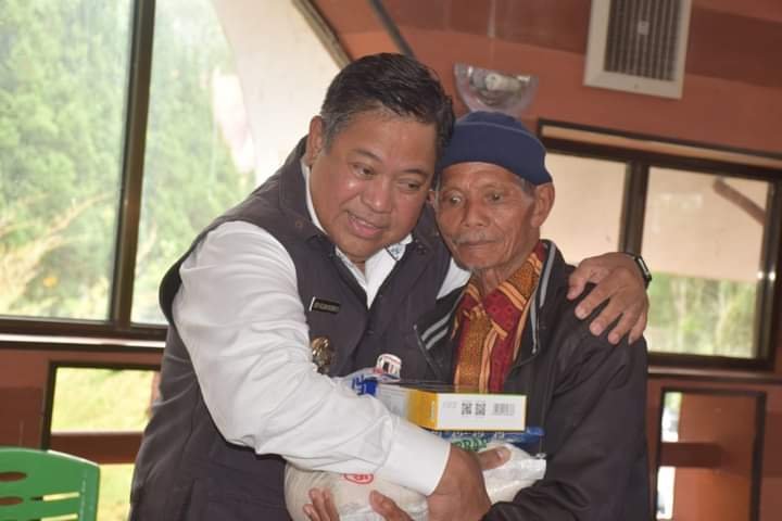 Dairi, kedannews.com – Bupati Dairi Eddy Berutu menyerahkan bantuan sosial (bansos) berupa beras, susu, dan bahan sandang lainnya kepada warga lanjut usia di Kecamatan Sitinjo, di Spot Wisata Nabi Nuh, Kawasan Taman Wisata Iman (TWI), Kamis (25/8/2023).