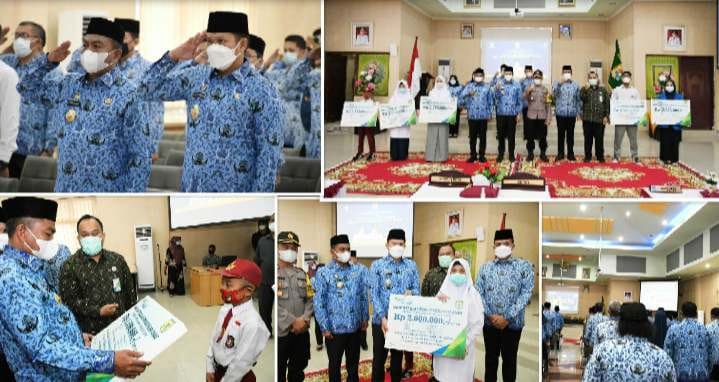Bupati Sergai Darma Wijaya didampingi Wabup Adlin Umar Yusri Tambunan menyampaikan jika dalam momen ini Mendikbudristek, Nadiem Makarim, menggarisbawahi beberapa tema penting terkait perkembangan pendidikan di Indonesia.