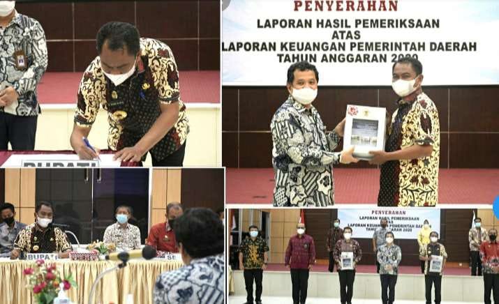 Bupati Sergai H. Darma Wijaya menerima langsung LHP Atas LKPD Kabupaten Sergai tahun 2020 yang diserahkan oleh Kepala BPK RI Perwakilan Sumut Eydu Oktain Panjaitan S.E., M.M., Ak., CA., CSFA.
