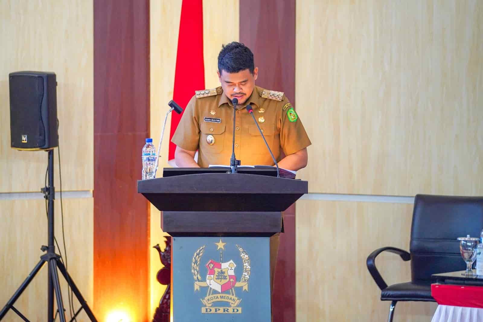 Demikian disampaikan Wali Kota Medan Bobby Nasution menjawab pertanyaan dari Fraksi Partai Demokrasi Indonesia Perjuangan (PDI-P) yang disampaikan Robby Barus SE MAP terkait progres penanganan kemiskinan dan pengangguran terbuka selama tahun 2023 dalam Nota Jawaban terhadap Pemandangan Umum Fraksi-Fraksi DPRD Kota Medan atas Rancangan Peraturan Daerah Kota Medan tentang Perubahan Anggaran Pendapatan dan Belanja Daerah Kota Medan Tahun Anggaran (TA) 2023 di Gedung DPRD Medan, Senin (4/9/2023).