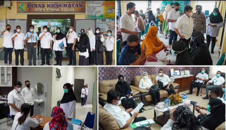 Selesai rapat, Dr. Ir. Binsar Situmorang M.Si, M.AP bersama dengan dr. Henny Sri Hartati dan Kabid Komunikasi Dinas Kominfo Tebing Tinggi Iswan Suhendi, S.STP, M.Si melakukan pengecekan pelaksanaan vaksinasi yang sedang dilaksanakan di Kecamatan Tebing Tinggi.