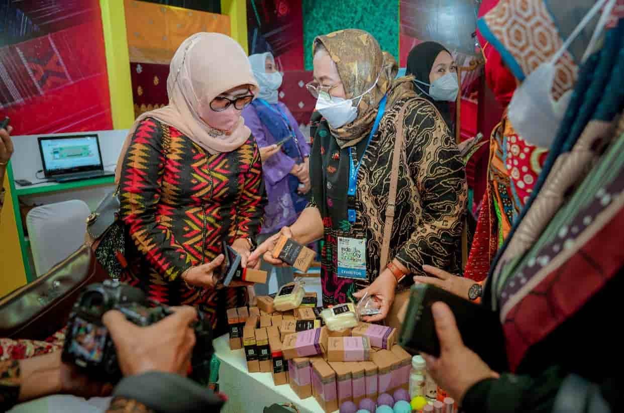 Jogyakarta – Kedan News | Antusiasme  masyarakat  mengunjungi stand Pemko Medan  yang mengikuti Indo Smart City Forum dan Expo (ISCFE) 2021 di The Ritch Jogya Hotel Yogyakarta cukup tinggi. Sejumlah hasil produk para penggiat koperasi dan UMKM  hasil binaan Ketua TP PKK dan Dekranasda Kota Medan Ny Kahiyang Ayu M Bobby Afif Nasution ditampilkan di event yang digelar dalam rangka memeriahkan Rapat Kerja Teknis Asosiasi Pemerintah Kota Seluruh Indonesia (APEKSI) yang berlangsung 13-15 Oktober.