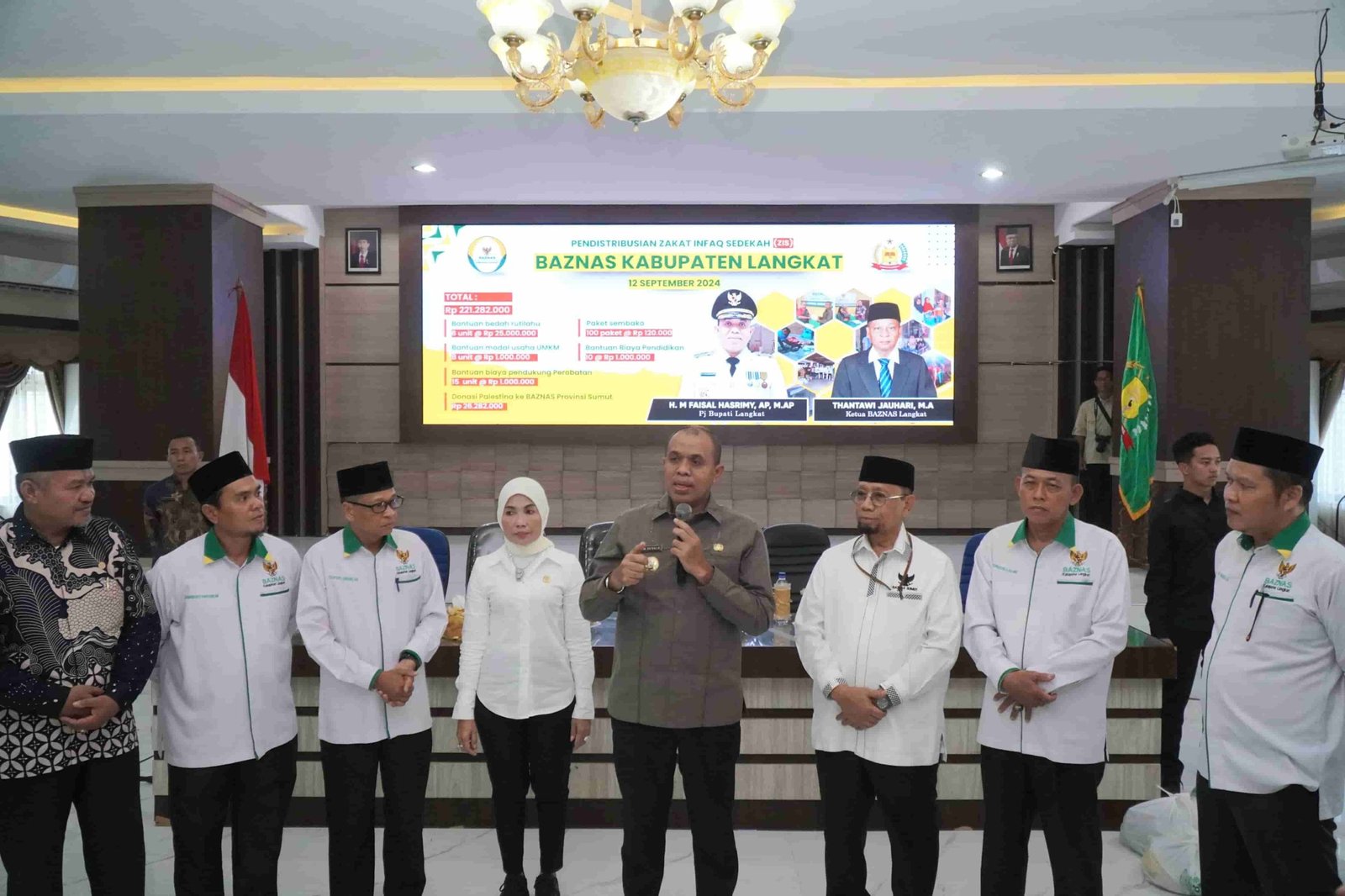 Langkat, kedannews.com – Pj Bupati Langkat, H. M. Faisal Hasrimy, AP., M.AP., memimpin acara pendistribusian bantuan Zakat, Infaq, dan Sedekah (ZIS) dari Baznas Kabupaten Langkat untuk triwulan III. Acara yang digelar di Ruang Pola Kantor Bupati Langkat ini berhasil mengumpulkan total bantuan senilai Rp 221.282.000, yang akan disalurkan kepada masyarakat yang membutuhkan.