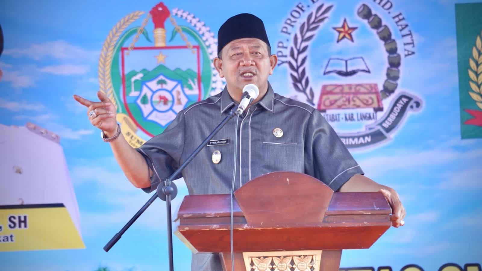 Plt Bupati Langkat H.Syah Afandin SH pada kesempatan ini kami menyampaikan terima kasih dan selamat datang kepada Bapak Pj Gubernur Sumatera Utara yang telah meluangkan waktu bersama masyarakat di daerah ini tentunya kehadiran bapak merupakan motivasi buat kami dan masyarakat untuk terus berbuat dan berada pada jalan kebaikan.