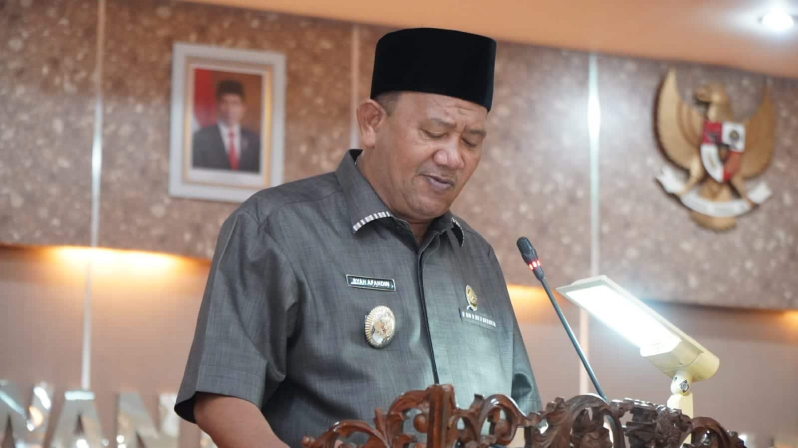 Stabat, kedannews.com – Pelaksana Tugas (Plt) Bupati Langkat H Syah Afandin SH menyampaikan penjelasan tentang LKPJ (laporan keterangan pertanggung jawaban) Bupati Langkat Tahun Anggaran (TA) 2021 pada paripurna DPRD Langkat, di Gedung DPRD Langkat, Senin (28/3/2022).
