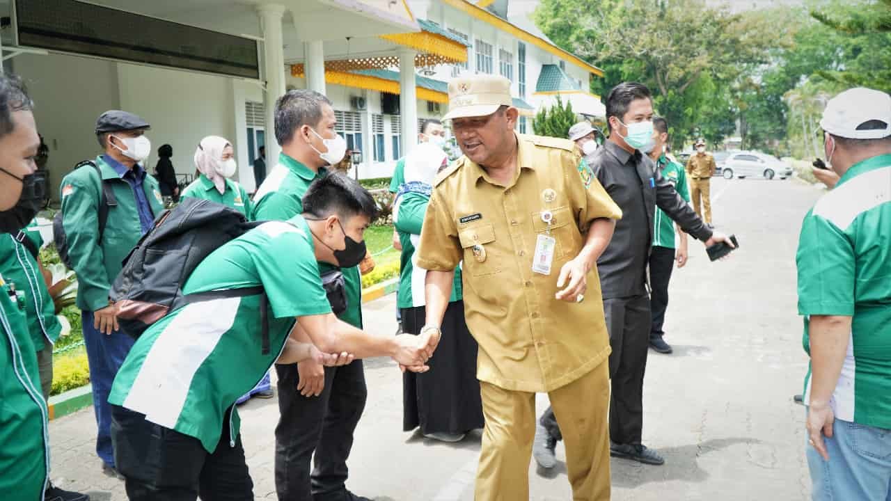 Setelah itu menyambut sekaligus melepas Mahasiswa kuliah kerja nyata – pembelajaran pemberdayaan masyarakat (KKN-PPN) Universitas Sumatera Utara (USU) 2022, di Halaman Kantor Bupati Langkat, Stabat.