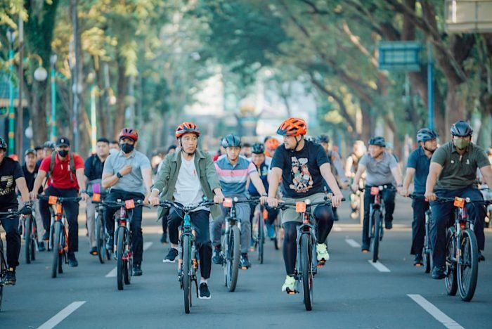 Medan, kedannews.com – Warga yang tengah asyik berolahraga di kegiatan Car Free Day (CFD) di seputaran Lapangan Merdeka, Minggu (12/2), sontak terkejut. Sebab, Presiden Joko Widodo didampingi Wali Kota Medan Bobby Nasution, Gubernur Sumut Edy Rahmayadi beserta unsur Forkopimda Sumut dan Kota Medan tiba di lokasi dengan mengendarai sepeda. Warga pun langsung menghentikan kegiatan olahraganya dan langsung mengabadikan momen langka itu dengan ponselnya masing-masing.