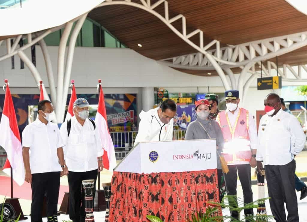 Merauke, kedannews.com ~ Presiden Joko Widodo meresmikan terminal baru Bandara Mopah di Kabupaten Merauke, Provinsi Papua, pada Minggu, 3 Oktober 2021. Pengembangan infrastruktur tersebut akan menghubungkan dan mempersatukan wilayah Indonesia sehingga mobilitas orang, barang, dan jasa menjadi lebih mudah.