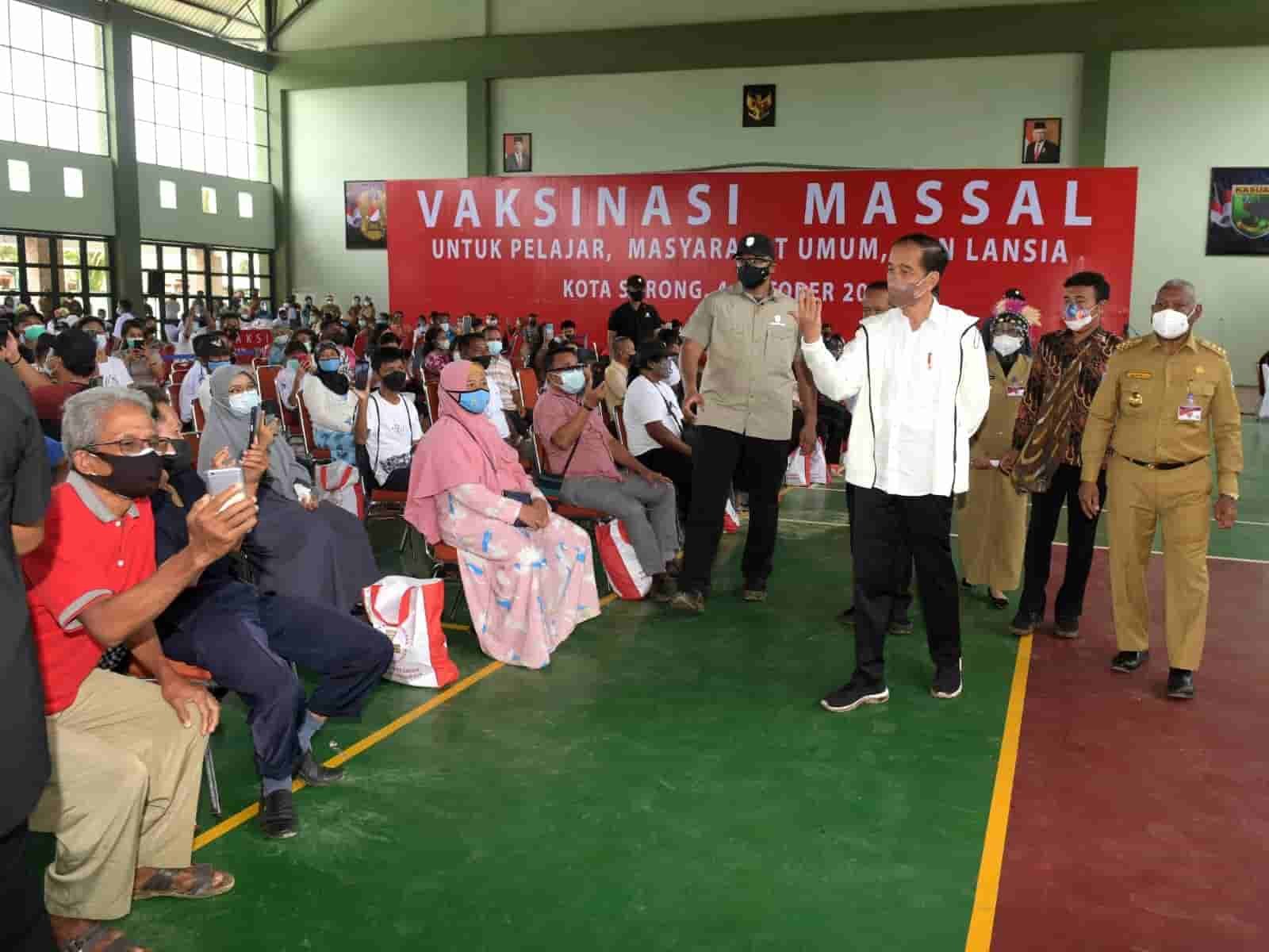Sorong, kedannews.com ~ Presiden Joko Widodo meninjau pelaksanaan vaksinasi yang digelar di Gedung Serbaguna Yonif Raider Khusus 762/VYS, Kecamatan Sorong Timur, Kota Sorong, pada Senin, 4 Oktober 2021. Presiden mengapresiasi antusiasme masyarakat di Provinsi Papua Barat dalam mengikuti program vaksinasi massal.