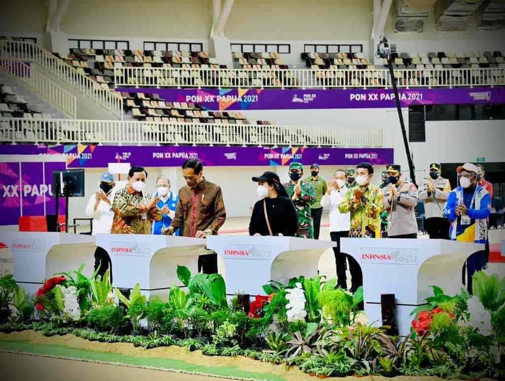 Jayapura, kedannews.com ~ Presiden Joko Widodo meresmikan tujuh arena pertandingan yang akan digunakan dalam perhelatan Pekan Olahraga Nasional (PON) XX Papua Tahun 2021. Peresmian yang ditandai dengan penandatanganan prasasti tersebut digelar di Istora Papua Bangkit, Kabupaten Jayapura, Sabtu, 2 Oktober 2021.
