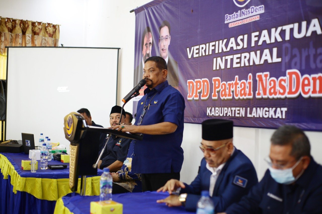 Hal ini dikatakan Ketua Dewan Pakar DPW Partai NasDem Sumatera Utara, Rahudman Harahap saat memberikan arahan pada verifikasi faktual intenal di Kantor DPD Partai NasDem Kabupaten Langkat Jalan Proklamasi, Stabat, Kamis (21/7/2022).