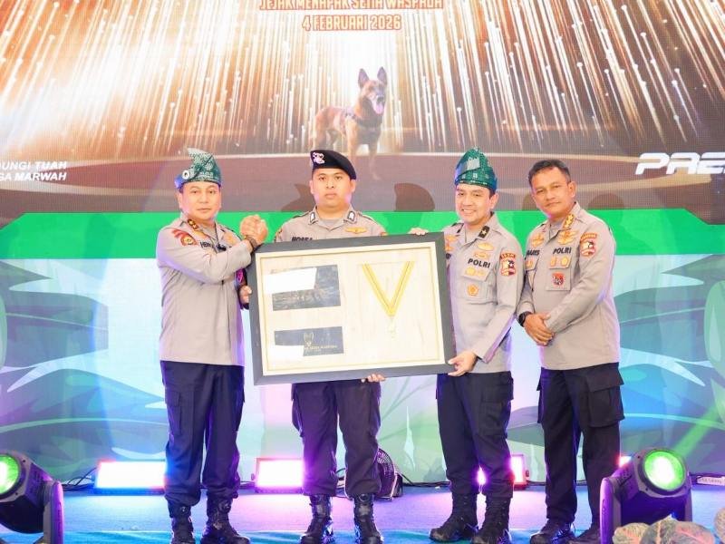 PEKANBARU, kedannews.co.id – Reno, anjing pelacak (K9) milik Polda Riau, menerima penghargaan medali dari Kapolri sebagai bentuk apresiasi atas dedikasinya dalam misi kemanusiaan dan operasi kepolisian. Penganugerahan ini berlangsung di Mapolda Riau, Kota Pekanbaru, Rabu (4/2/2026), dan menandai perhatian resmi terhadap peran vital satwa dalam tugas kepolisian.