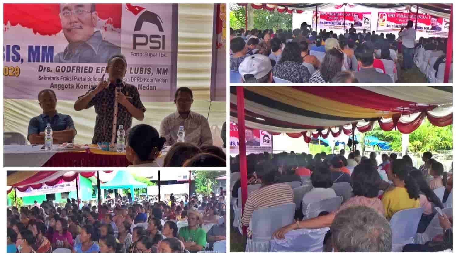 MEDAN, kedannews.co.id β Ratusan warga antusias menghadiri Reses V Masa Persidangan II Tahun 2025-2026 yang digelar anggota DPRD Kota Medan dari Fraksi PSI, Drs. Godfried Effendi Lubis, di Lapangan Jalan Sempurna Ujung, Lingkungan 5, Kelurahan Binjai, Kecamatan Medan Denai, Kota Medan, Provinsi Sumatera Utara, Sabtu pagi (21/02/2026).
