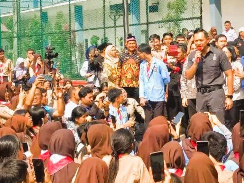 Di hadapan para siswa, AHY berbagi pengalaman hidup dan perjalanan kariernya, termasuk soal kegagalan yang pernah ia alami dalam kompetisi politik.