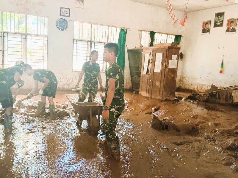 Sejak Minggu, satuan tugas Penanggulangan Bencana Alam (Gulbencal) Kodam I/Bukit Barisan mengintensifkan pembersihan area sekolah agar proses belajar mengajar dapat segera kembali berlangsung. Material lumpur yang menutupi ruang kelas dan halaman sekolah menjadi perhatian utama agar lingkungan belajar kembali aman dan layak digunakan.