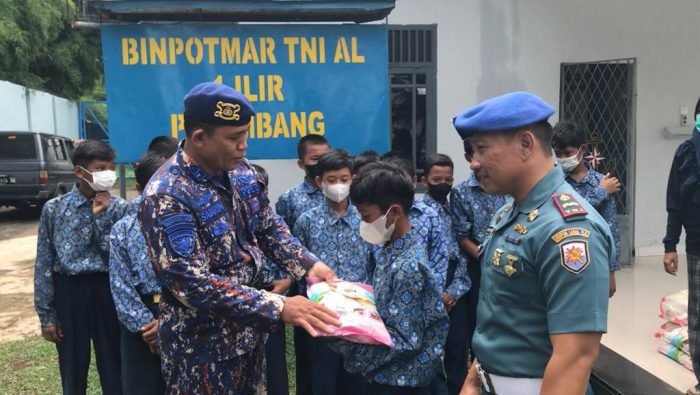 Dalam rangka memperingati HUT ke-77 TNI, Satpolairud Polrestabes Palembang bersama dengan Binpotmar 1 Ilir TNI AL Palembang melaksanakan kegiatan Bakti sosial (baksos) pembagian beras untuk anak-anak yatim piatu yang berada di Pesisir Sungai Musi, Kamis (06/10/2022).