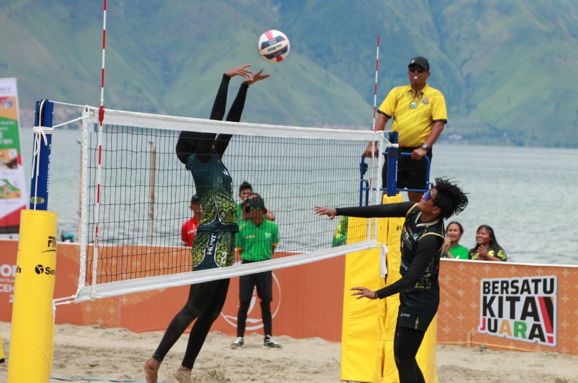 Pangururan, kedannews.com – Di tengah hujan yang mengguyur, Tim Putri Jawa Tengah 1 berhasil meraih kemenangan dramatis atas Tim Putri Jawa Barat 2 dengan skor 2-1 dalam pertandingan cabang olahraga Voli Pasir pada PON XXI Aceh-Sumut 2024. Pertandingan berlangsung di Pantai Situngkir, Kecamatan Pangururan, Kabupaten Samosir, Sumatera Utara, pada Rabu (11/9/2024).
