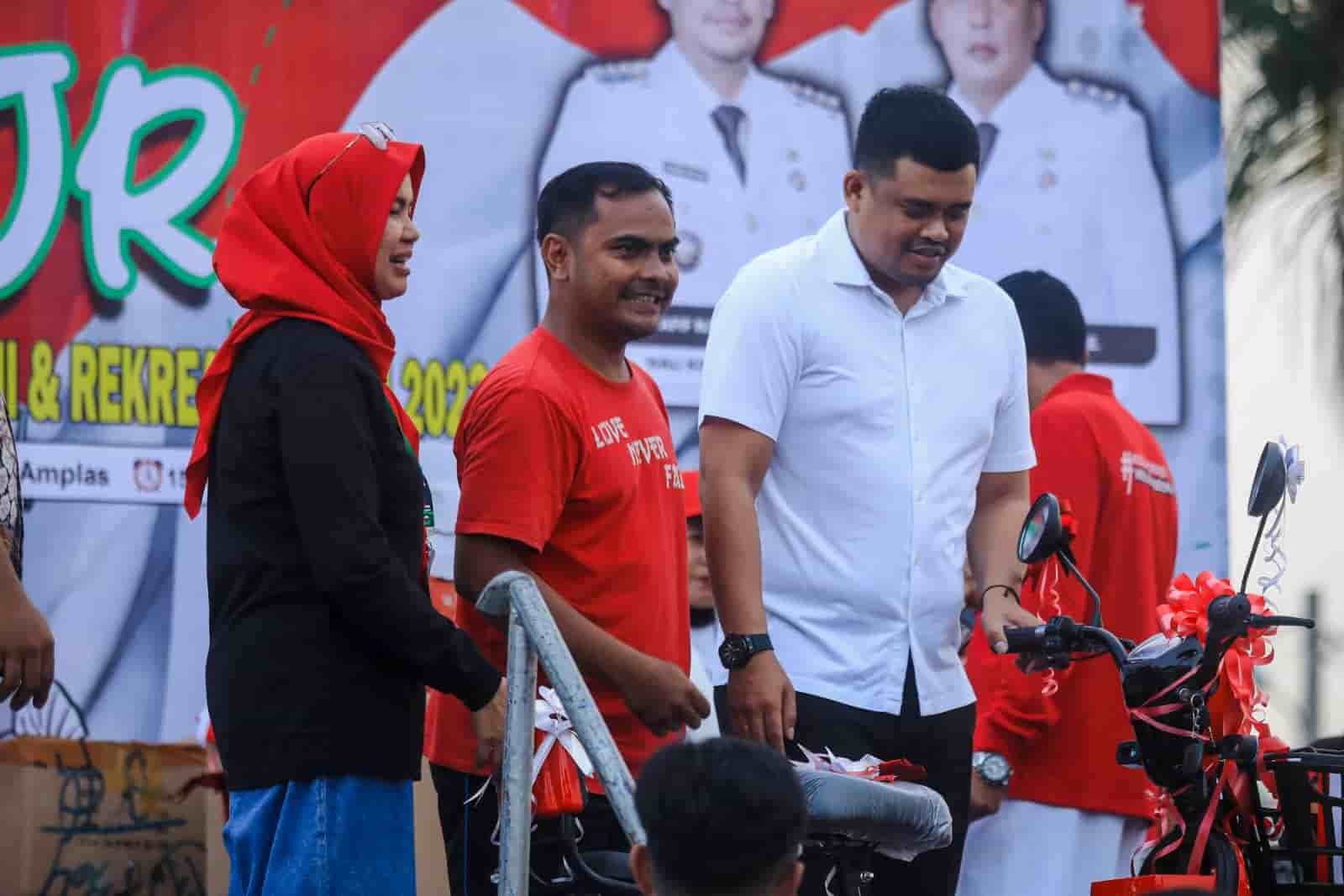 Sementara itu, Agus Pardede warga yang menerima hadiah sepeda listrik dari Bobby Nasution, mengaku senang dan tidak menyangka mendapatkan doorprize.