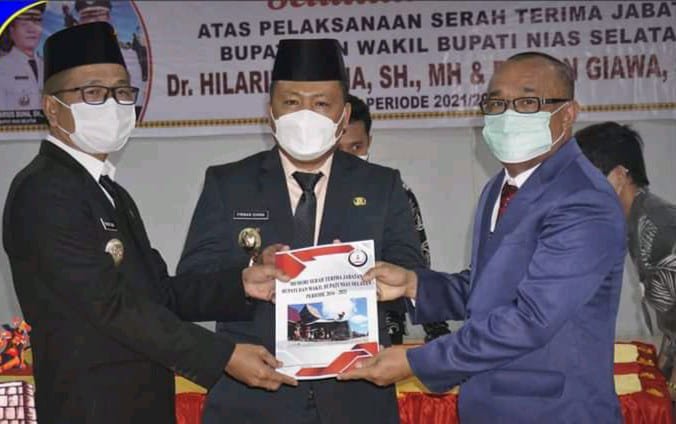 Nias Selatan, kedannews,com – Serah terima jabatan (Sertijab) Bupati dan Wakil Bupati Nias Selatan, (Nisel) Dr. Hilarius Duha, SH.,MH., dan Firman Giawa, SH.,MH., dengan pelaksana harian (PLH) bupati Nias Selatan, Ir.Ikhtiar Duha, MM, terlaksana dengan aman, tertib, lancar dan penuh hikmat, di Aula Kantor Bupati, Jalan Sorake KM 5 Teluk Dalam, Nisel, Kamis (29/04/21).