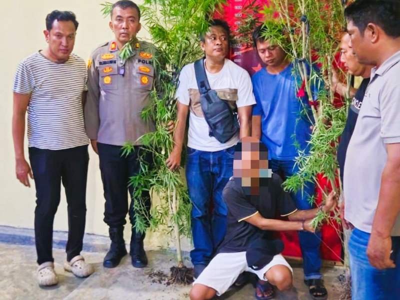 Dari hasil penggeledahan, polisi menemukan dua batang pohon ganja yang ditanam di dalam dapur rumah pelaku. Tanaman tersebut sengaja disembunyikan di area domestik untuk mengelabui warga sekitar dan menghindari kecurigaan aparat.