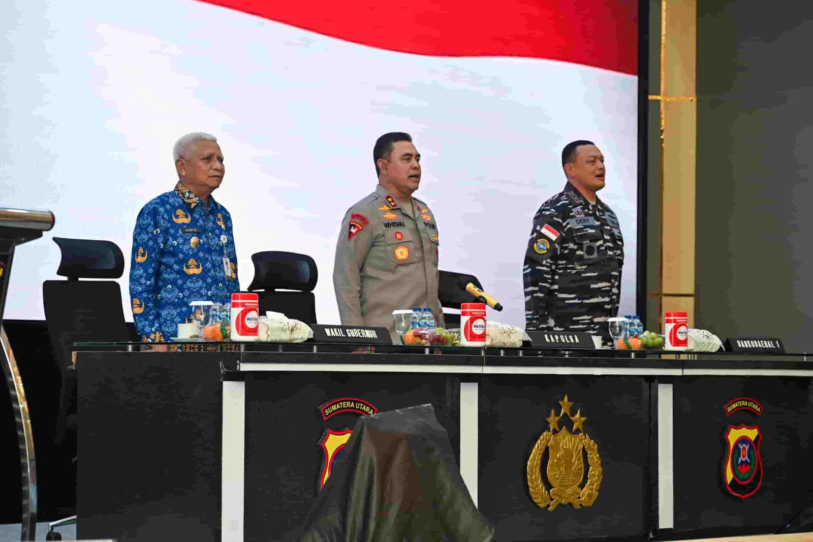 Hadir pada rapat ini Forkopimda Sumut, instansi terkait dan Kapolres serta Kapolsek se-Sumut. Hadir juga pimpinan BUMN, BUMD, OPD terkait Pemprov Sumut serta pejabat di lingkungan Polda Sumut.