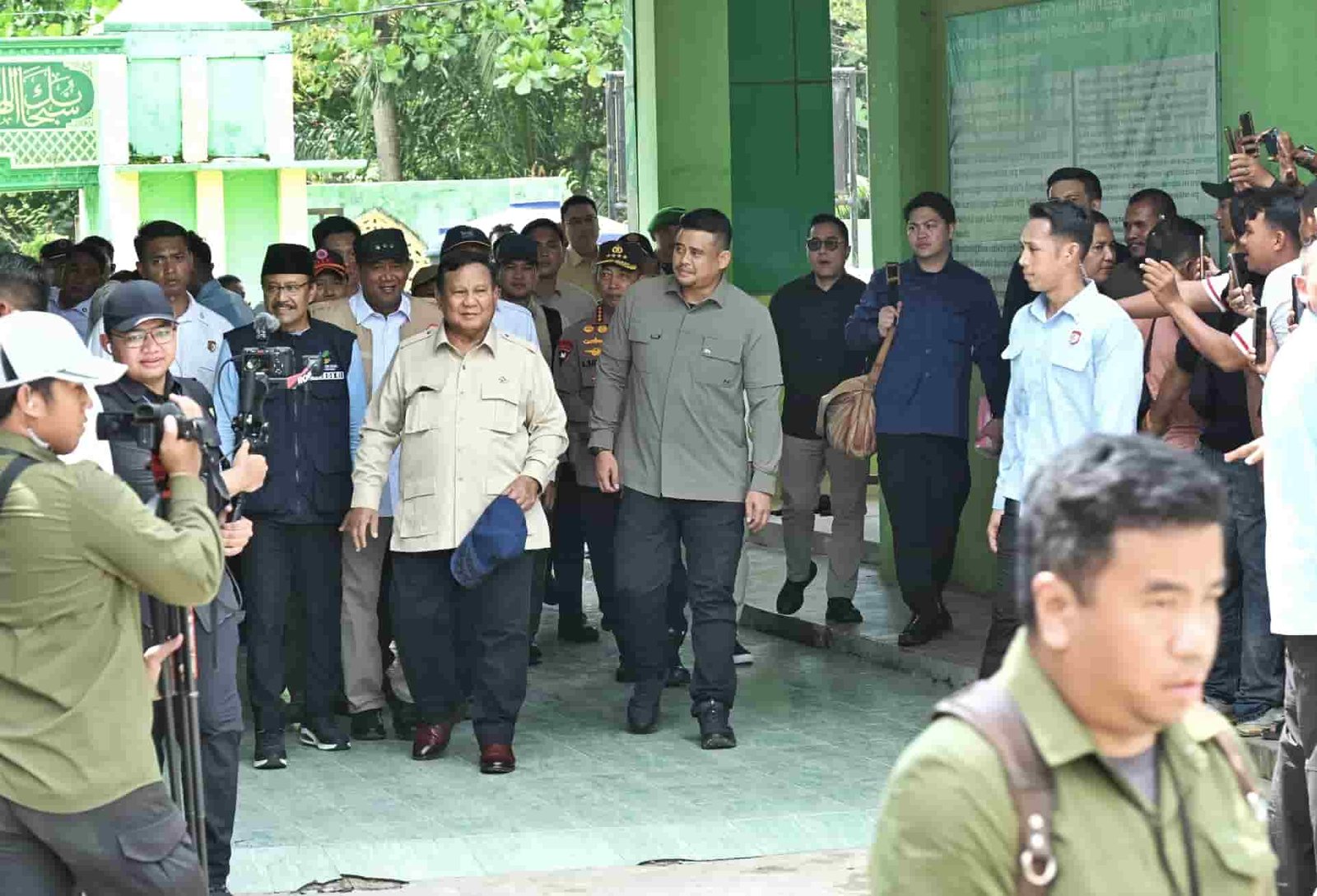 βTadi sudah dilaporkan gubernur, kekurangan air bersih, air minum, perbaikan tanggul segera kita lakukan, panglima TNI akan kita kerahkan, PU akan kita kerahkan, angkatan darat, kepolisian akan kita kerahkan, semua kekuatan kita,β kata Prabowo didampingi Gubernur Sumut Bobby Nasution dihadapan pengungsi.