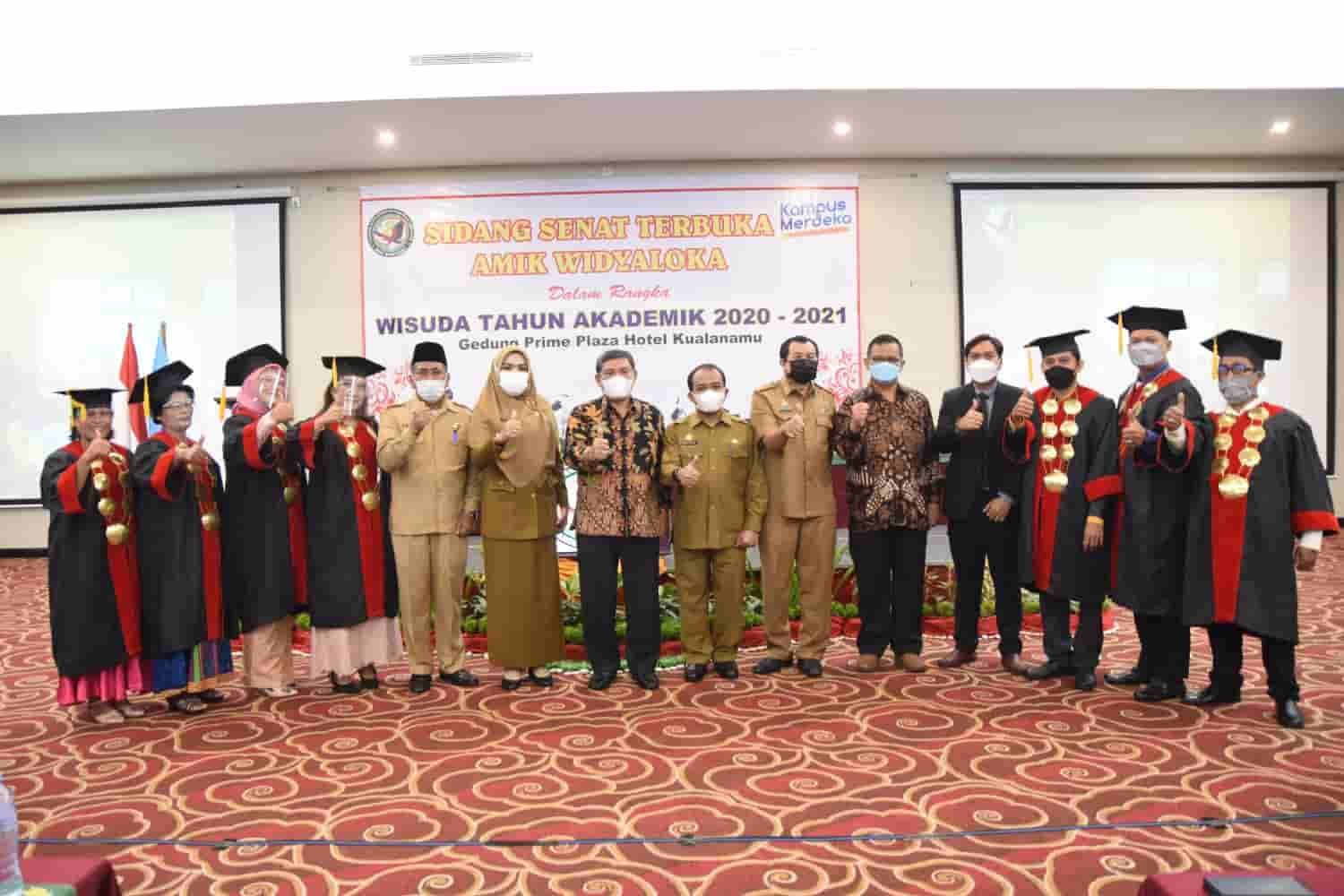 Batang Kuis, kedannews.com – Wakil Bupati Deliserdang, HM Ali Yusuf Siregar menghadiri Wisuda Program Diploma 3 Akademi Manajemen Informatika Komputer (AMIK) Widyaloka Tahun Akademik 2020-2021 di Ballroom Prime Plaza Hotel Kualanamu Deli Serdang, Desa Tumpatan Nibung, Kecamatan Batang Kuis, Selasa (30/11).