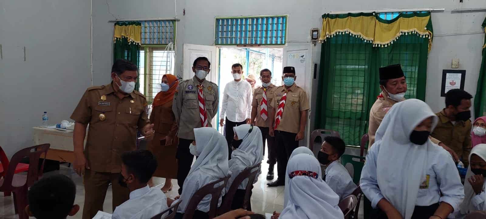 BERINGIN, kedannews.com – Wakil Bupati Deli Serdang mengunjungi Kecamatan Beringin dalam rangka monitoring pelaksanaan Vaksinasi Covid-19 yang dilaksanakan oleh Kwarran Gerakan Pramuka Kecamatan Beringin bekerjasama dengan Tim Nakes Puskesmas Karang Anyar melaksanakan Vaksinasi Sinovac tahap-1 dengan jumlah Dosis 500,diperuntukan untuk Siswa SMP,SMK/SMA serta para Guru yg belum divaksin. Vaksinasi yang bertemakan Pramuka Peduli β Kwarran Beringin tersebut dilakukan Β di YP. Dharma Karya Beringin Desa Sidodadi Ramunia Kecamatan Beringin, Senin (18/10/2021).