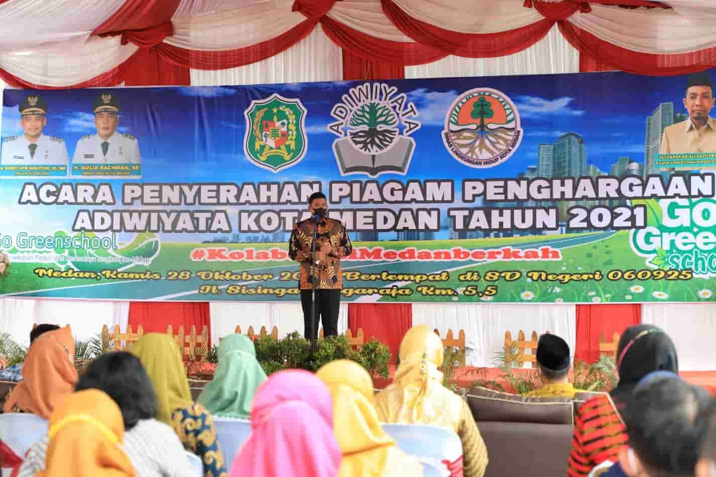 Sebelumnya, Kepala Dinas Lingkungan Hidup Zulfansyah Ali Sahputra menjelaskan bahwa piagam penghargaan Adiwiyata Kota Medan tahun 2021 diberikan kepada 48 sekolah tingkat Sekolah Dasar (SD) dan Sekolah Menengah Pertama (SMP) sederajat baik Negeri maupun Swasta yang ada di Kota Medan. Sekolah yang menerima piagam penghargaan Adiwiyata ini merupakan hasil penjaringan Dinas Lingkungan Hidup berkolaborasi dengan Dinas Pendidikan sejak tahun 2020 yang lalu. selain itu kami juga terus melakukan pembinaan agar sekolah melaksanakan gerakan peduli dan berbudaya lingkungan hidup di sekolah selama 12 bulan dan 48 sekolah berhasil dalam pelaksanaan tersebut sehingga berhak diberikan Penghargaan Adiwiyata.