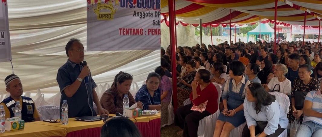 Medan, kedannews.co.id — Warga Lingkungan 10 Kelurahan Binjai, Kecamatan Medan Denai, Kota Medan tampak tumpah ruah dan antusias menghadiri kegiatan Sosialisasi Peraturan Daerah (Sosperda) Nomor 5 Tahun 2015 tentang Penanggulangan Kemiskinan yang digelar Anggota DPRD Kota Medan Fraksi PSI, Drs. Godfried Effendi Lubis, M.M., di lapangan kosong sebelah Gereja Bethel Tabernakel, Jalan Menteng II, Sabtu (13/12/2025).