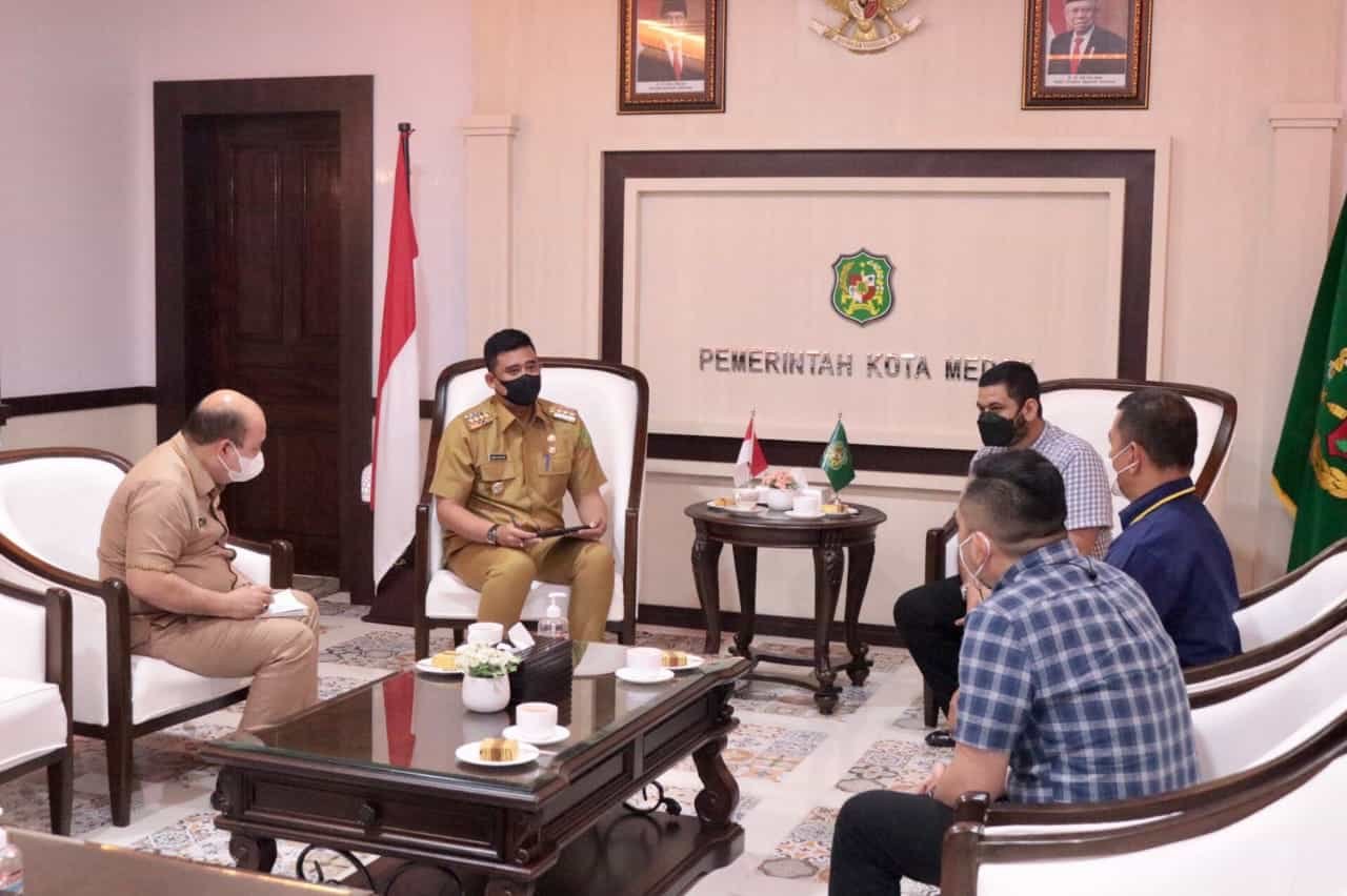 pengurus Yayasan Sultan Ma’moen Al Rasyid, antara lain Tengku Ma’moon Al Rasjid dan Ir. T. Reizan beraudiensi pada Wali Kota Medan Bobby Nasution, Selasa (28/9) di kantor wali kota.